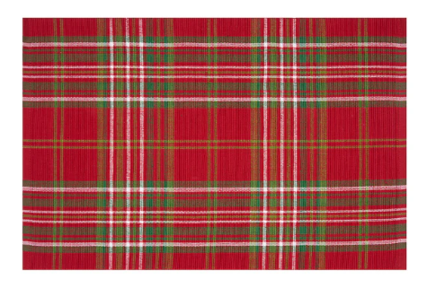 Festive and timeless choice, featuring a bold red background accented with holiday green and white plaid. This woven design perfectly captures the essence of the Christmas season, making it an ideal choice for holiday gatherings and celebrations. The rich red background sets a warm, inviting tone, while the green and white accents bring a touch of classic holiday charm. The combination of these colors in the plaid pattern creates a visually appealing and cheerful look that will enhance any table setting, from casual family meals to more formal holiday feasts. 13 x 19