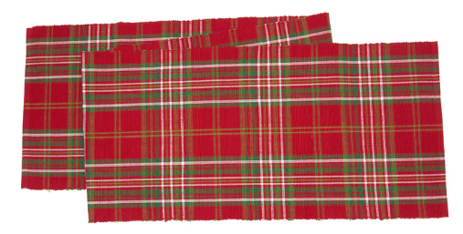 Festive and timeless choice, featuring a bold red background accented with holiday green and white plaid. This woven design perfectly captures the essence of the Christmas season, making it an ideal choice for holiday gatherings and celebrations. The rich red background sets a warm, inviting tone, while the green and white accents bring a touch of classic holiday charm. The combination of these colors in the plaid pattern creates a visually appealing and cheerful look that will enhance any table setting, from casual family meals to more formal holiday feasts.