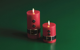 Flameless LED pillar candle with faux wick. Requires 2 AA batteries, not included.