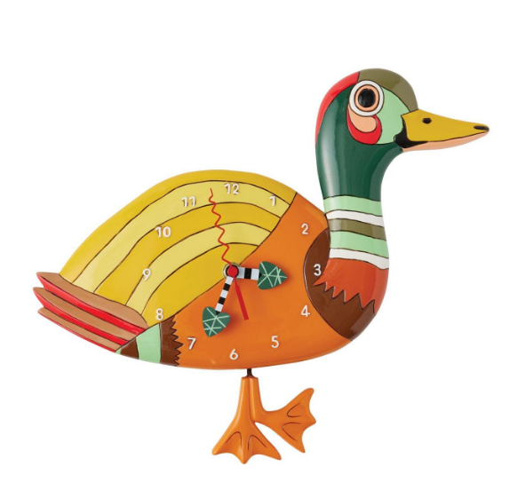 Add a splash of charm with this wall clock by Allen Designs, featuring a vibrant duck in cheerful yellows, oranges, and greens. The delightful clock invites the spirit of the outdoors inside, encouraging you to waddle towards your next adventure!