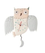 With star emblazoned wings, this wide eyed owl clock keeps time with whimsical style. Crescent moon clock hands and a starry pendulum keep time with dreamy designs. Night owls will delight in this twilight inspired timepiece from Allen Designs.
