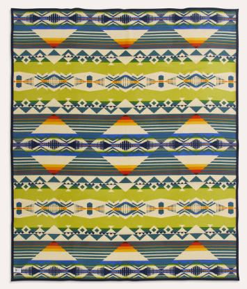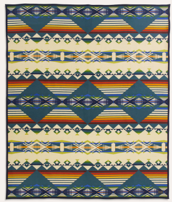 This USA-made blanket captures the serenity of a quiet forest stream. Cool diamonds reflect the currents and eddies of a wandering creek, while bands of stripes echo how water warms closer to the surface. Paths of prints show the tracks of bears, wolves, deer, and more who visit the water. They lower their heads to drink, ears raised to hear the many sounds of the forest. Woven from wool and cotton at Pendleton’s own mills, it’s a beautiful piece for your home or cabin. Like all of our jacquard blankets, this blanket reverses for two distinct looks.