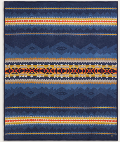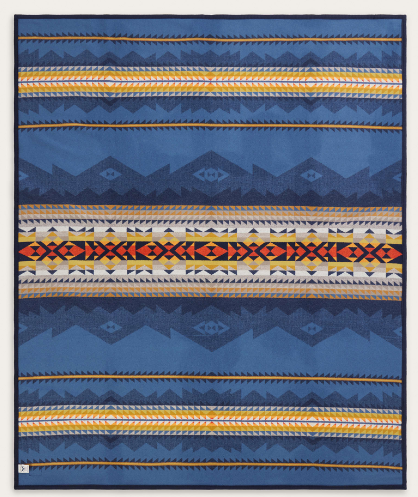 Fields of wildflowers are banded by peaks that represent the mountains of the Cascade Volcanic Arc. Also known as Cascadia, this range stretches from Lassen Peak in California, to the Silverthrone Caldera in British Columbia, Canada. The towering snow-capped peaks include Mount Hood and Mount Rainier in the Pacific Northwest. The center band represents the floral bounty that blooms in the rich volcanic soil near these dormant volcanoes: coreopsis, marigolds, poppies, and so many more.
