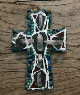 Exquisite, one of a kind cross created on a metal base!  Each cross is signed by the artist Julie Wishmeyer. This would add a touch of flair to any wall décor from contemporary to western!