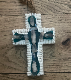 Exquisite, one of a kind cross created on a metal base!  Each cross is signed by the artist Julie Wishmeyer. This would add a touch of flair to any wall décor from contemporary to western!