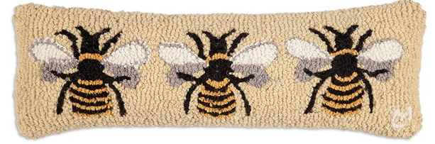 Bumblebees buzzing in the garden on this charming motif lumbar pillow. Designed in Vermont by Laura Megroz.