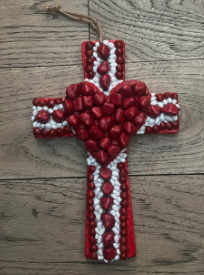 Exquisite, one of a kind cross created on a metal base! Each cross is signed by the artist Julie Wishmeyer. This would add a touch of flair to any wall décor from contemporary to western!