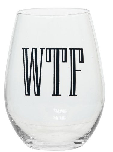 Gift your friends or loved one with our WTF Wine Glass. This timeless, stemless wine glass design adds some humor to their happy hour drink.